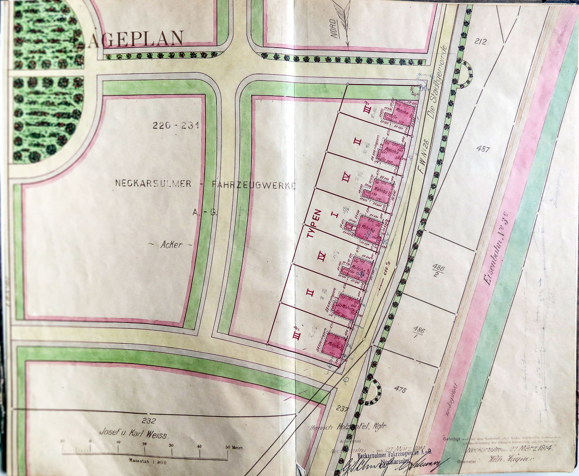 The Neckarsulm vehicle works was one of the forerunners of the Audi company and carried the NSU brand name from 1913. In view of the housing shortage, the managing directors were far-sighted and supported the founding of a building cooperative. Settlement houses were new buildings on the outskirts of a town or in a newly developed area - a housing estate. The monthly charge was affordable even for workers and created inexpensive housing where the free market failed.