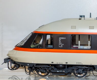 Der vierteilige IC-Triebzug der ersten Baureihe 403 hat es als Spur-1-Modell von Wunder auf die Messe geschafft. Erste Fotos.