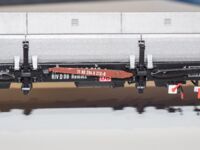 Auf der Intermodellbau traf ich Marcus Jaegers mit seinen neuen Handmustern. Die beiden Wagenmodelle haben rundum klappbare Borde, die einzeln heruntergeklappt werden können, und die hauseigenen gefederten Drehgestelle vom Typ Y25. Die überwiegend 3D-gedruckten Modelle wurden mit Metall in den Langträgern beschwert.